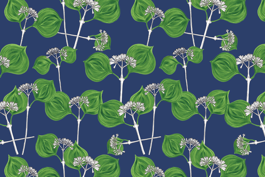Wielokierunkowa, bezszwowa kompozycja roślinna o tańczących splątanych liściach i kwiatach.